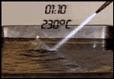 Liquido K a 324 °C se acaba inflamando. Nótese la escasa emisión de humo comparado con el aceite mineral.