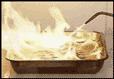 Aceite mineral ardiendo totalmente tras 4 minutos. Nótese el humo negro denso.
